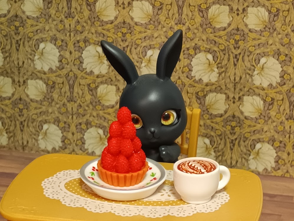 カプセルトイでうさぎドールを手に入れてかわゆいなあと愛でていたんですが、この子をモデルとして写真を撮ればいいのでは、とひらめいたのです。というわけで前述のとおり、カプセルトイを中心に100均セリアで売られていたものなんかも含めてミニチュアがだいぶ増えてきまして。所有欲より「並べたい」なと。セリアのドールハウスを撮影背景というかそのまま部屋に見立てて、家具を置いたりそこで食べ物のミニチュアの前にうさぎドールを置いたり、みたいな遊びをしていました。楽しいです!